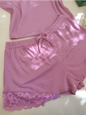 تاپ و شورت زنانه کبریتی مدل لب توری رنگ صورتی
