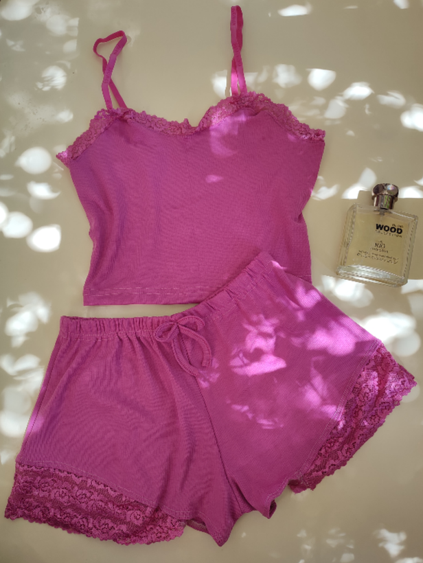 تاپ و شورت زنانه کبریتی مدل لب توری