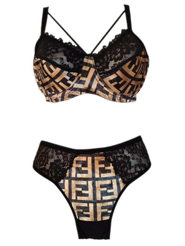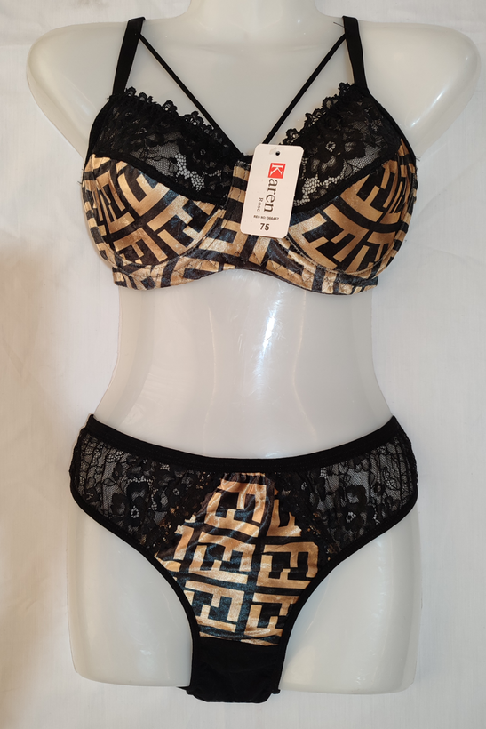 ست لباس زیر زنانه فنردار کارن مخمل طرح فِندی