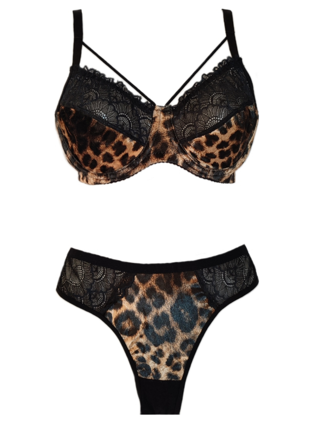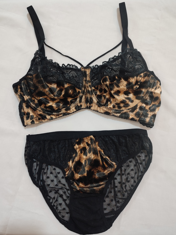 ست لباس زیر زنانه فنردار کارن مخمل طرح پلنگی