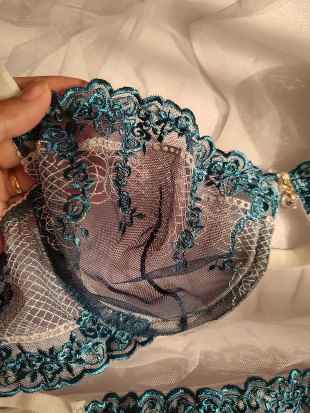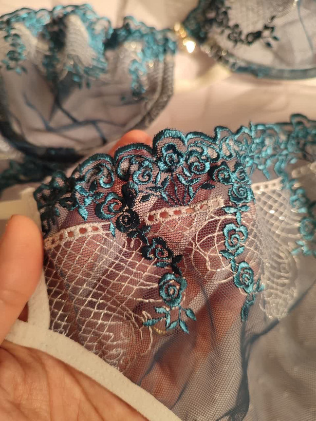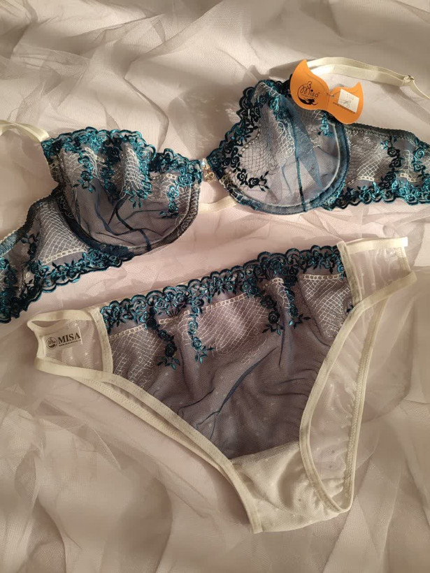 ست لباس زیر زنانه فنردار برند میسا طرح رز آبی