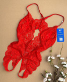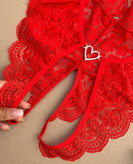 بادی زنانه فانتزی دانتل فاق باز قلبی رنگ قرمز