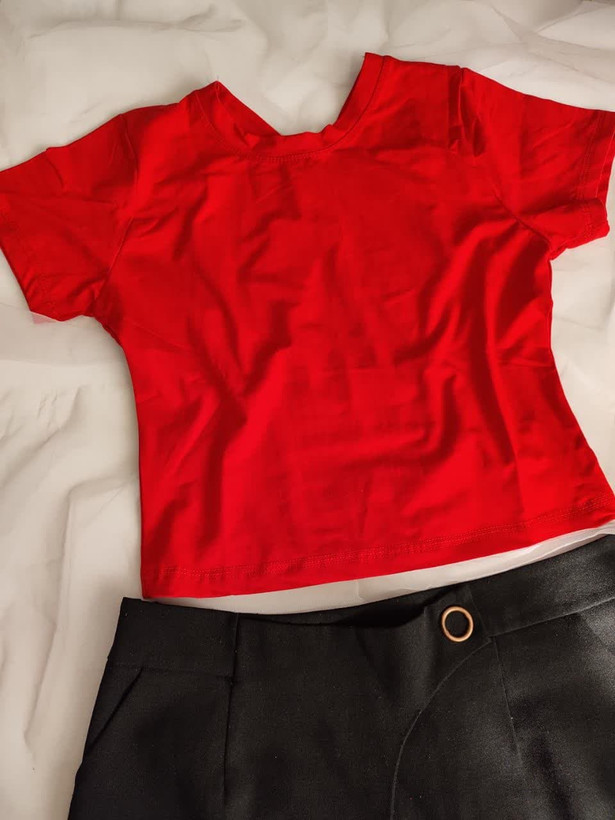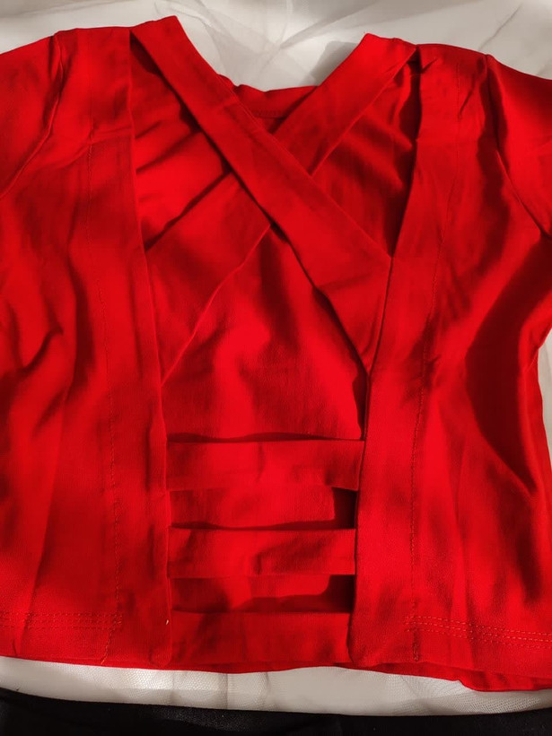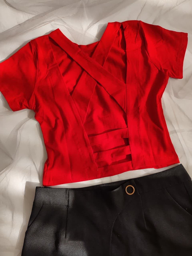 کراپ تیشرت فانتزی پشت ضربدری ساریسا رنگ قرمز