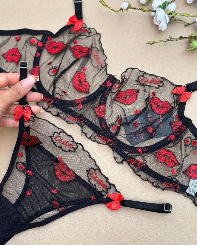 ست لباس زیر زنانه تورگاز هانیس طرح لب
