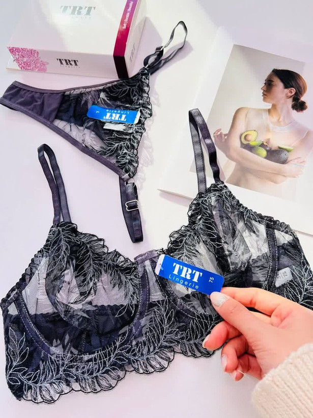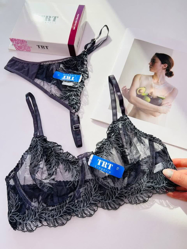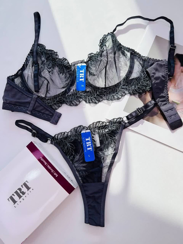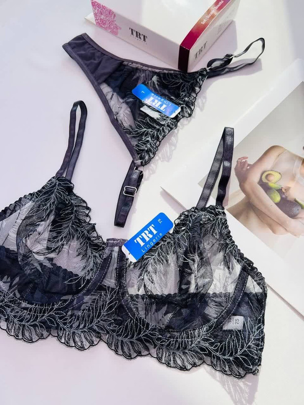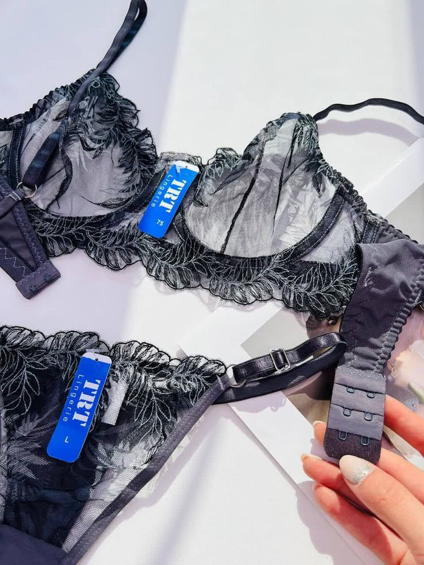 ست لباس زیر زنانه تورگاز فنردار تی آرتی رنگ زغالی