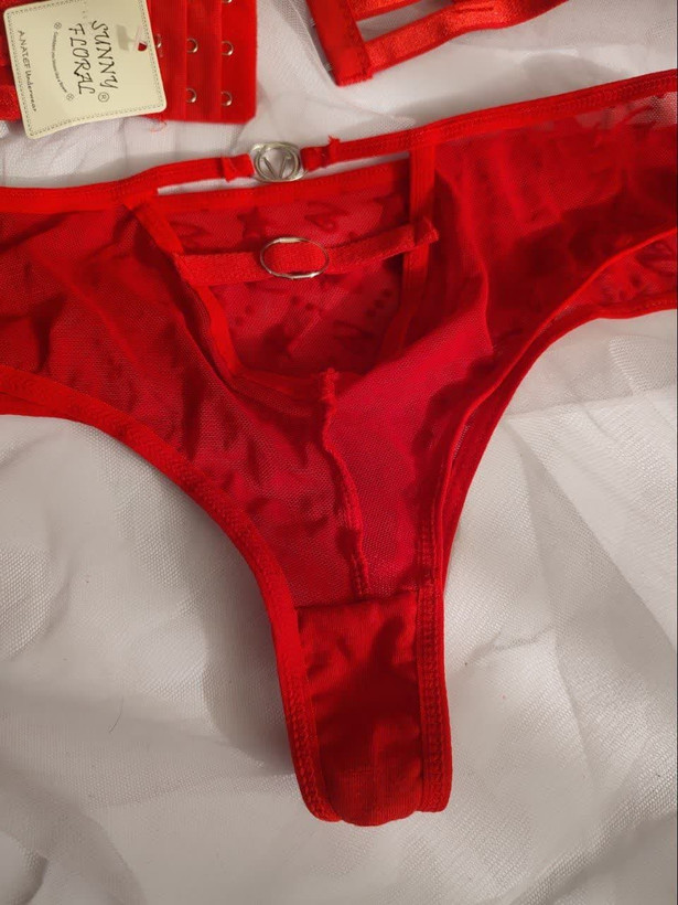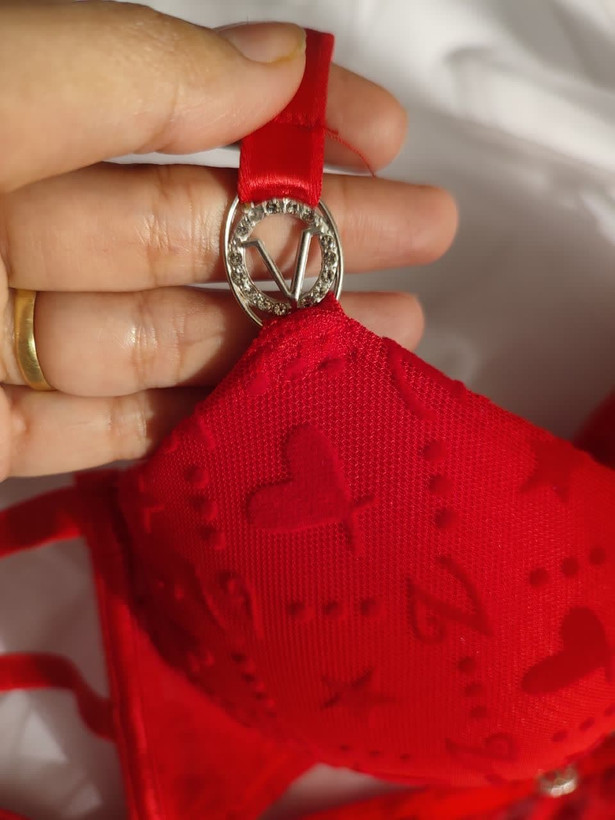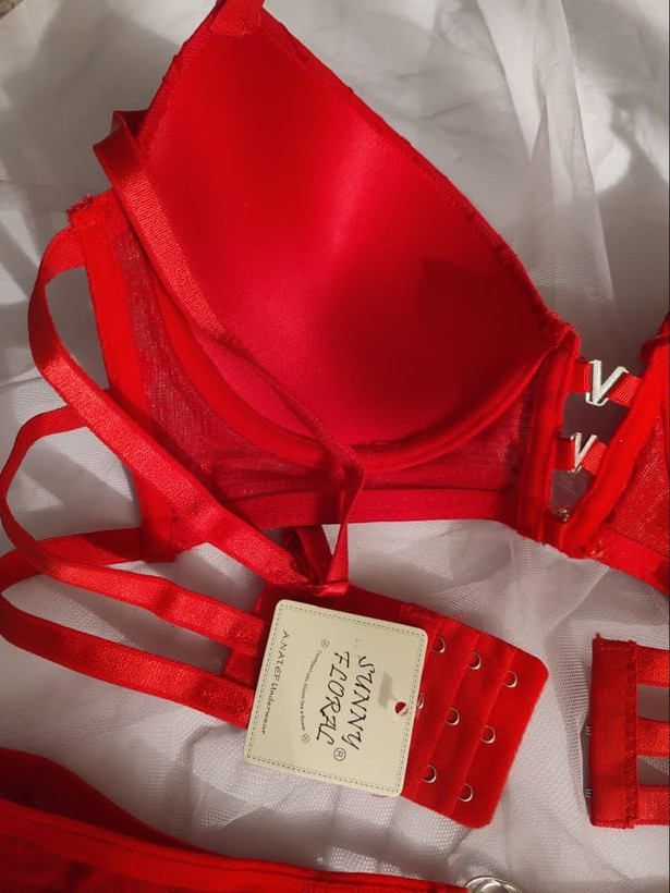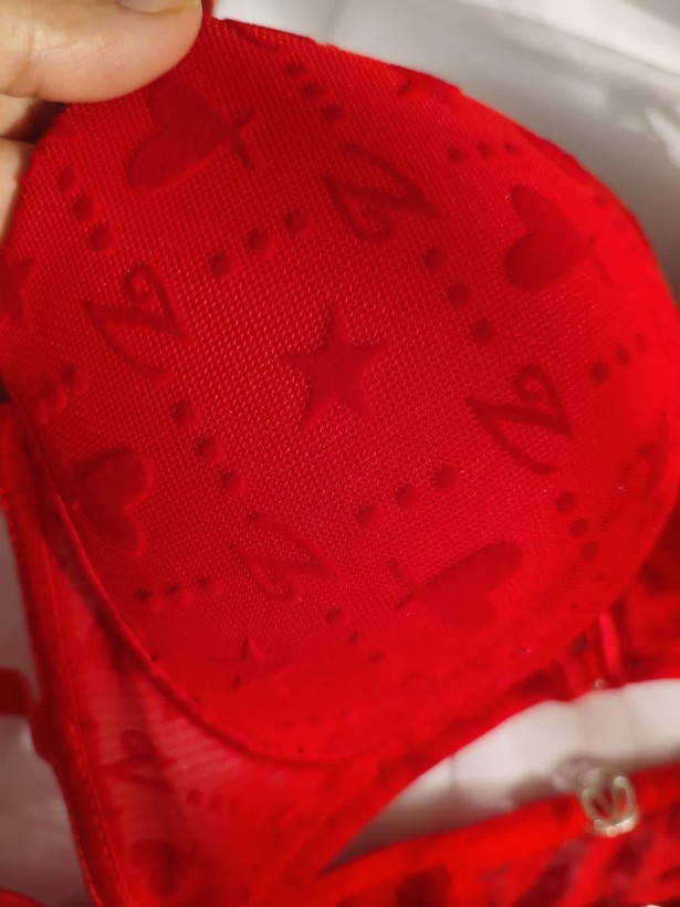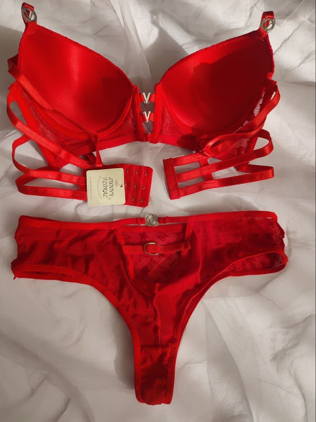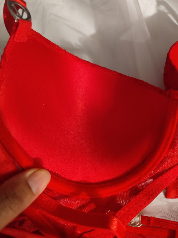 ست لباس زیر زنانه اسفنجی مدل نگین دار رنگ قرمز