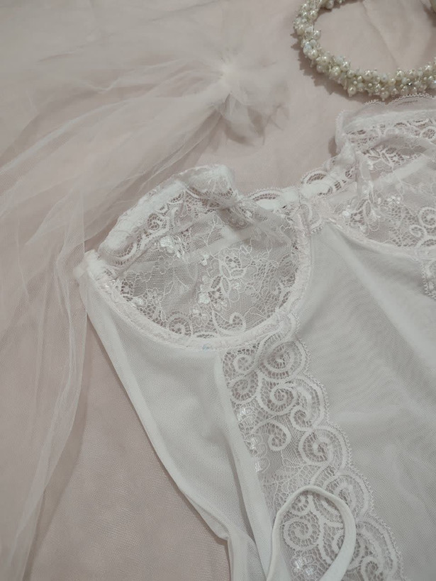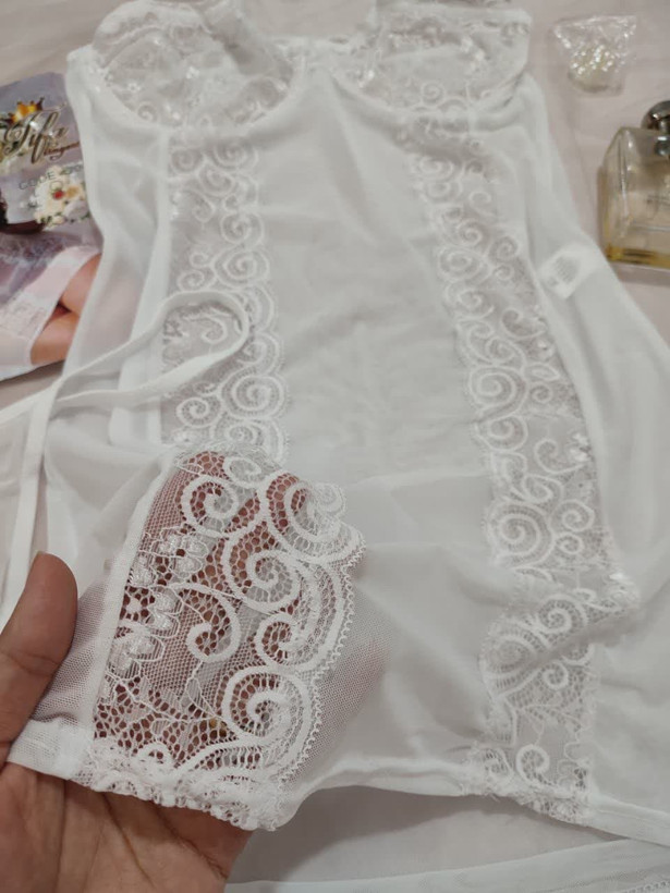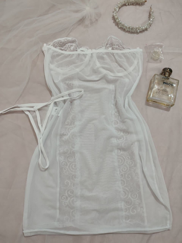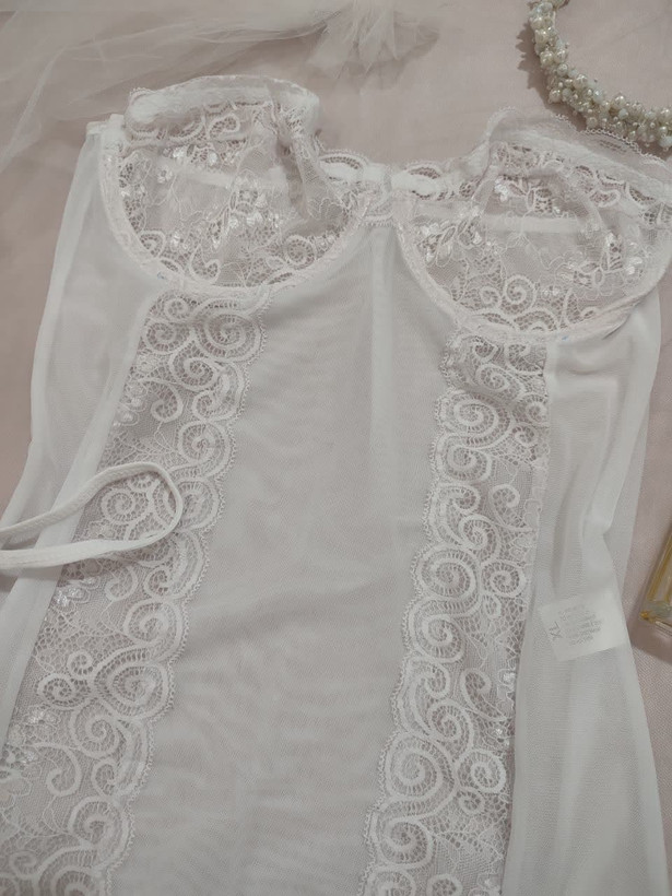 لباس خواب کاستوم فانتزی فنردار عروس همراه تور سر