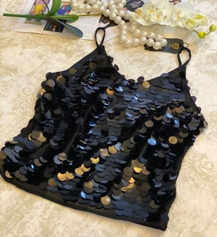 تاپ زنانه مجلسی پولکی رنگ مشکی