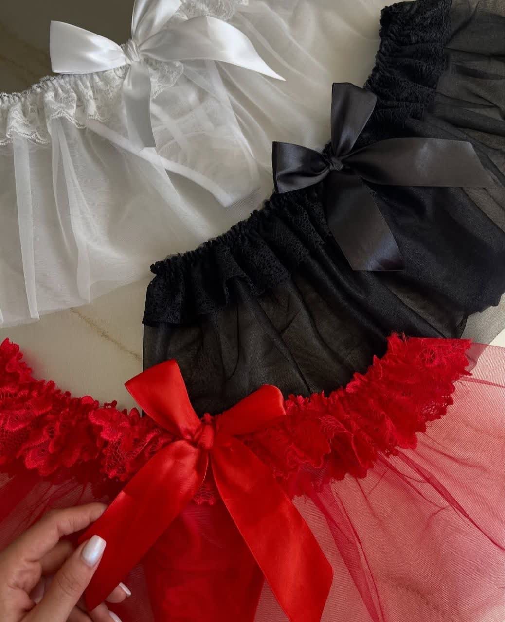 شورت فانتزی زنانه دامنی توری پاپیونی