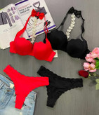 ست لباس زیر زنانه اسفنجی لیزری پشت پاپیون مرواریدی