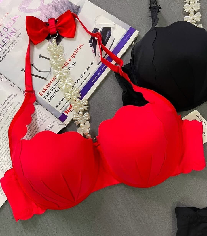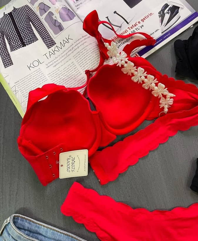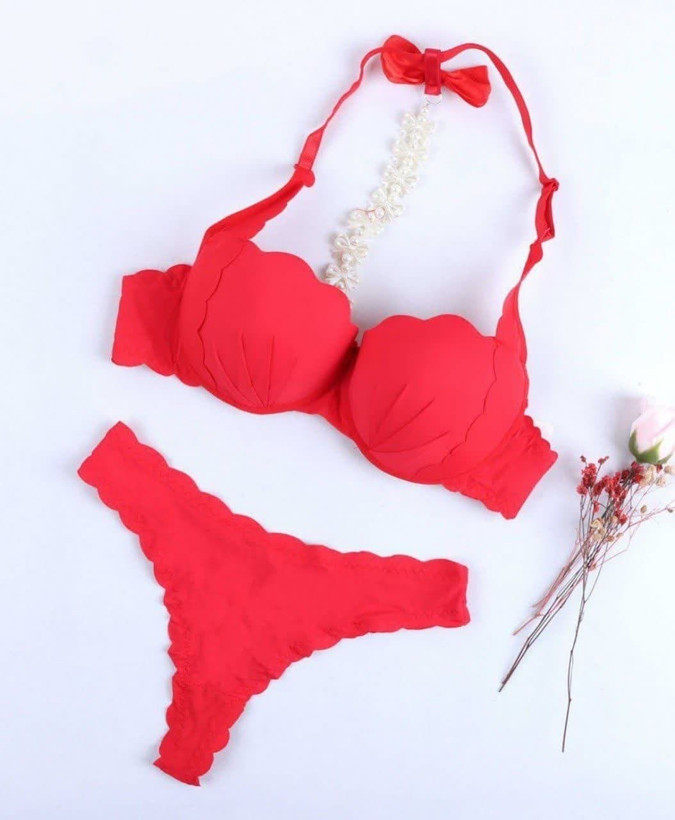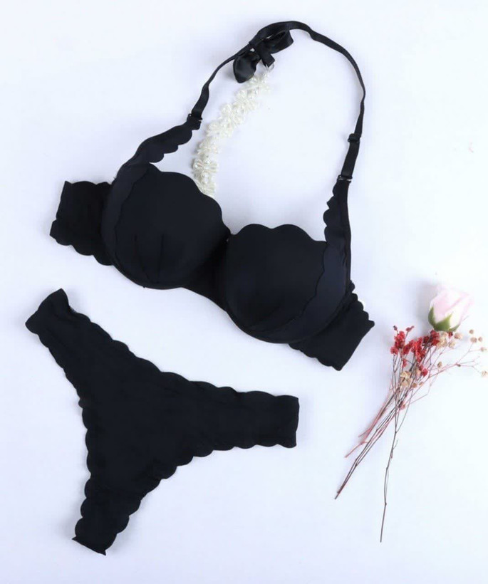 ست لباس زیر زنانه اسفنجی لیزری پشت پاپیون مرواریدی