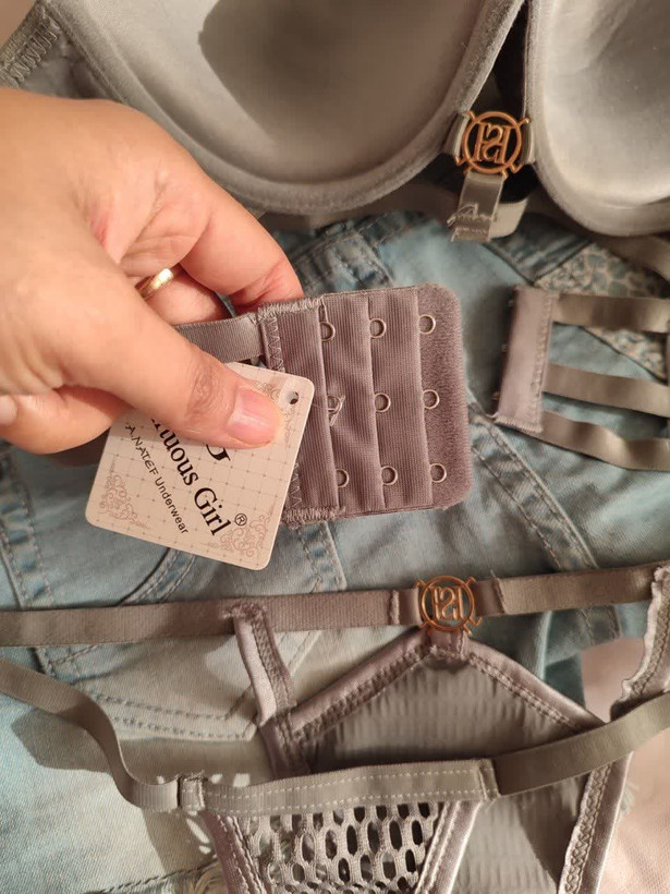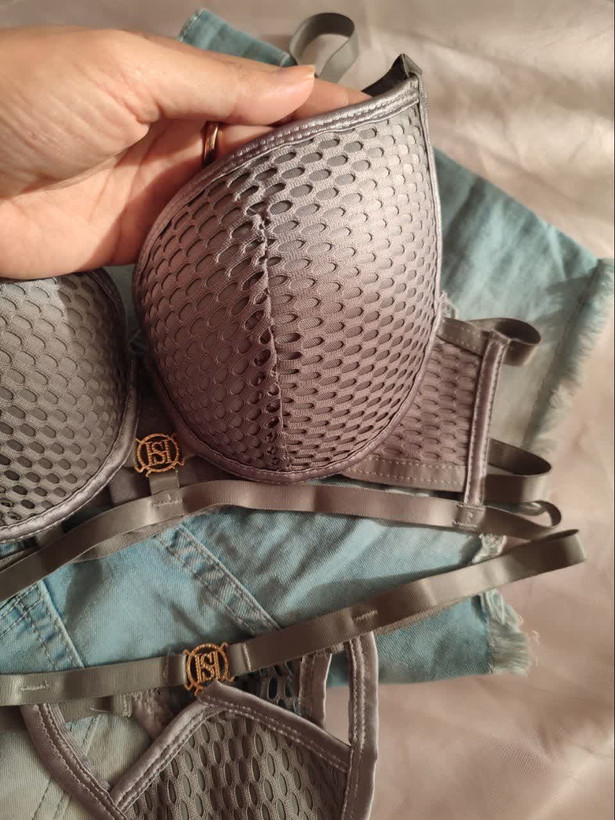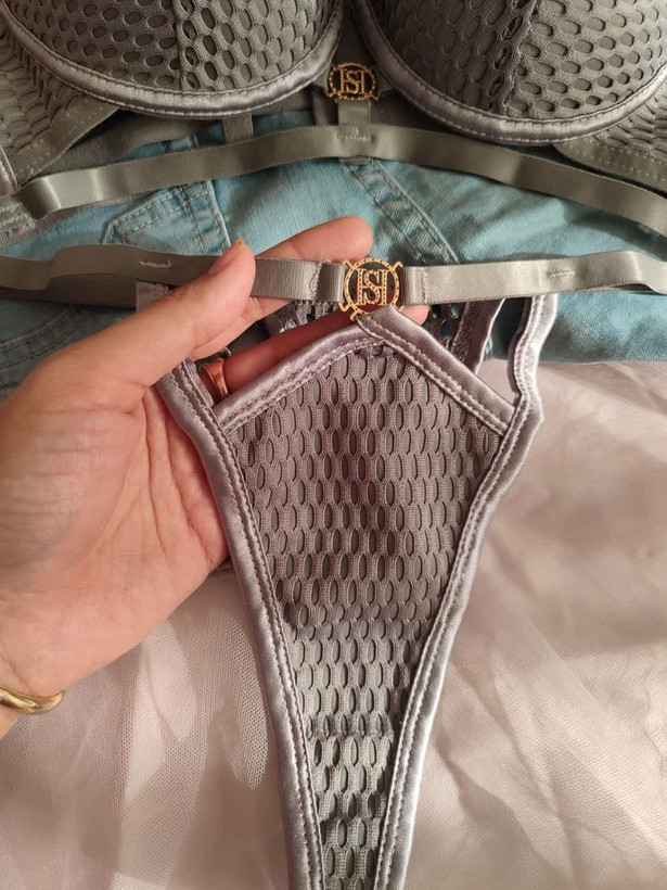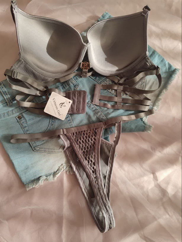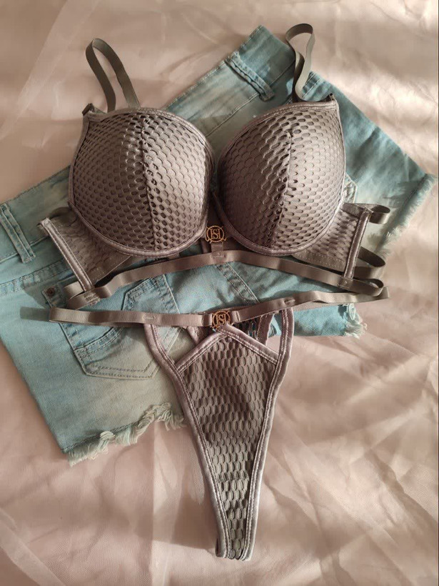 ست لباس زیر زنانه اسفنجی مدل زنبوری رنگ طوسی
