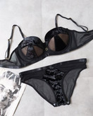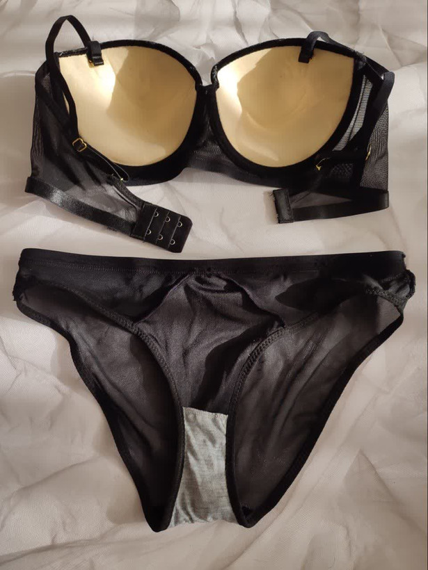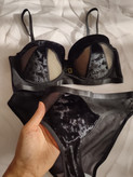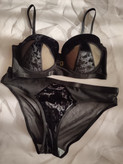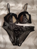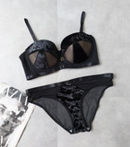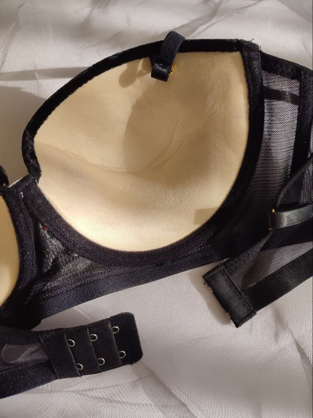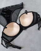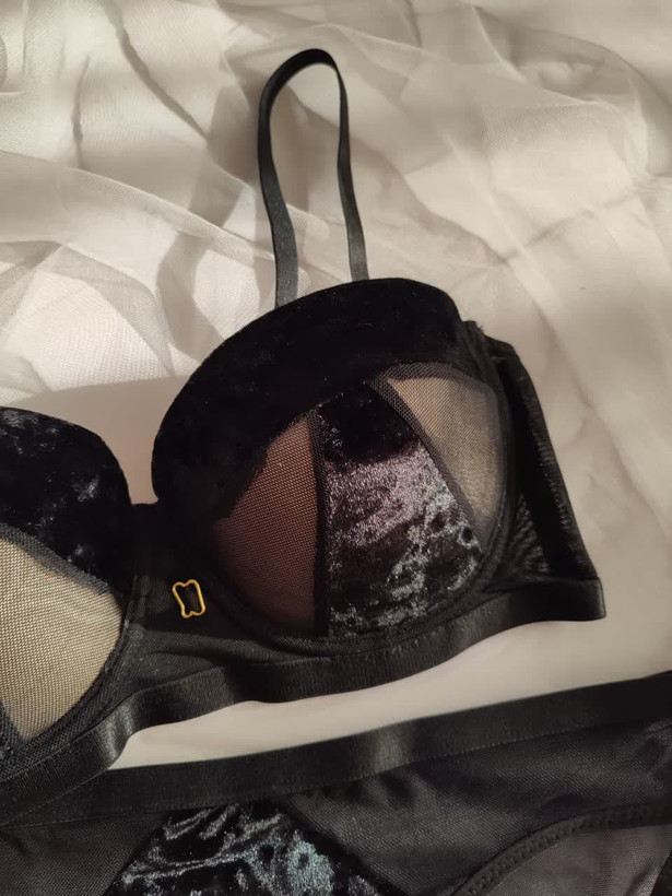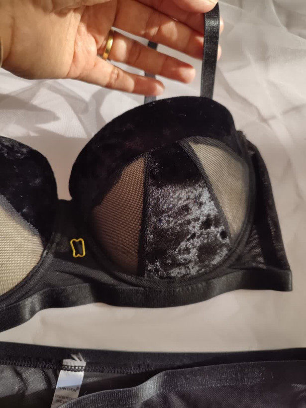 ست لباس زیر زنانه اسفنجی دکلته مخملی رنگ مشکی