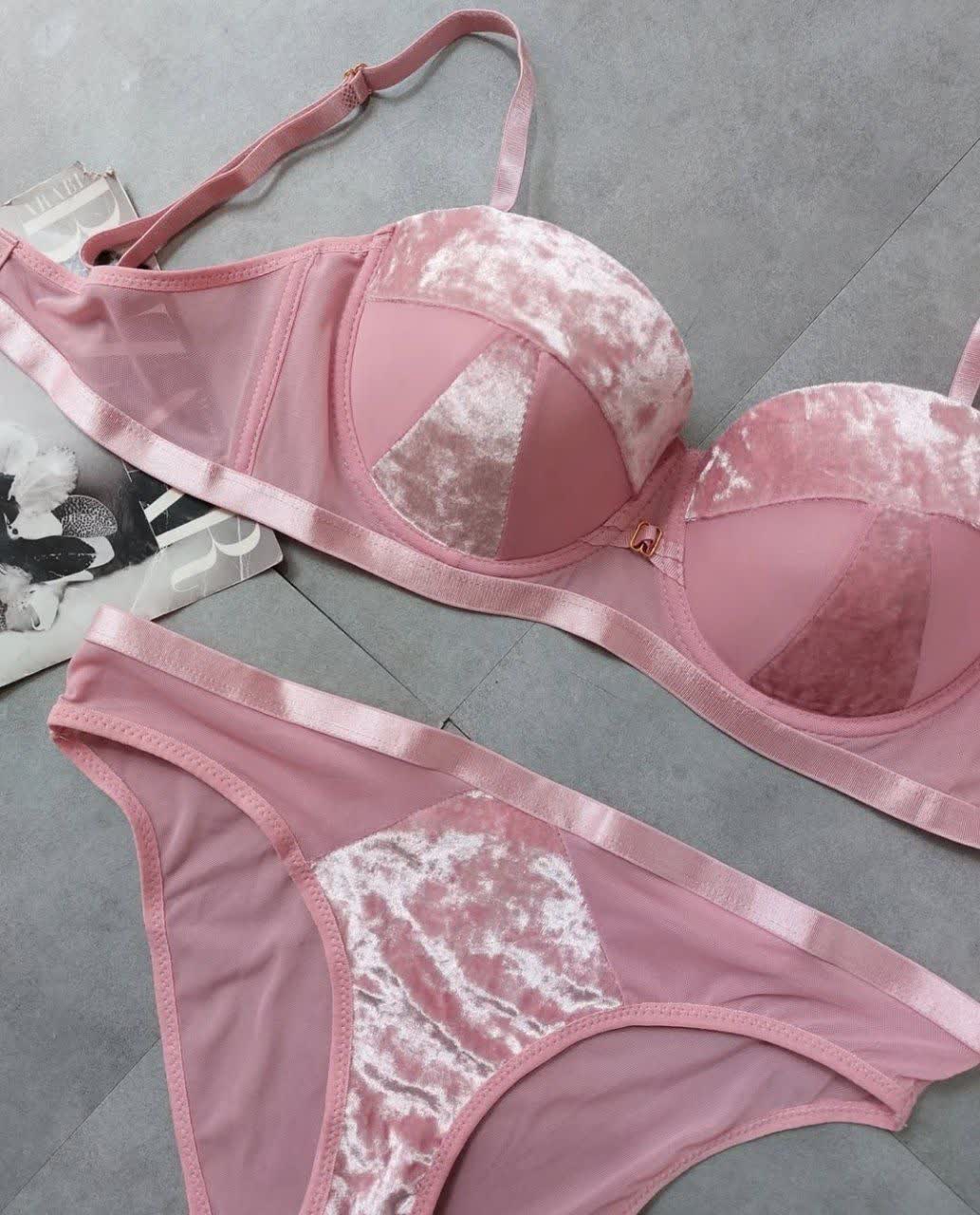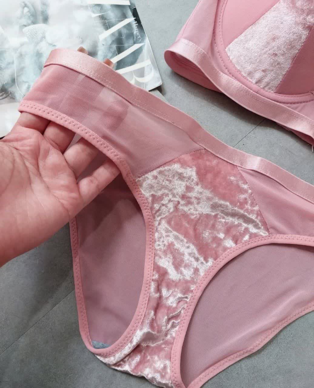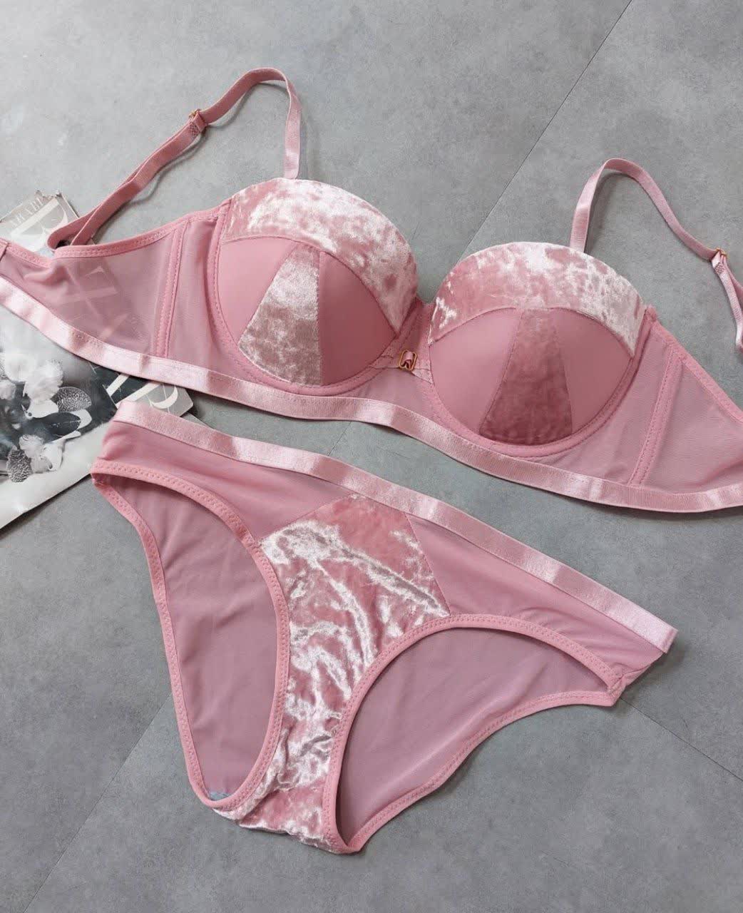 ست لباس زیر زنانه اسفنجی دکلته مخملی