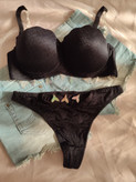 ست لباس زیر زنانه اسفنجی دکلته صدفی پری رنگ مشکی