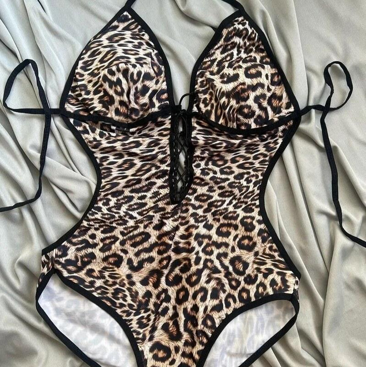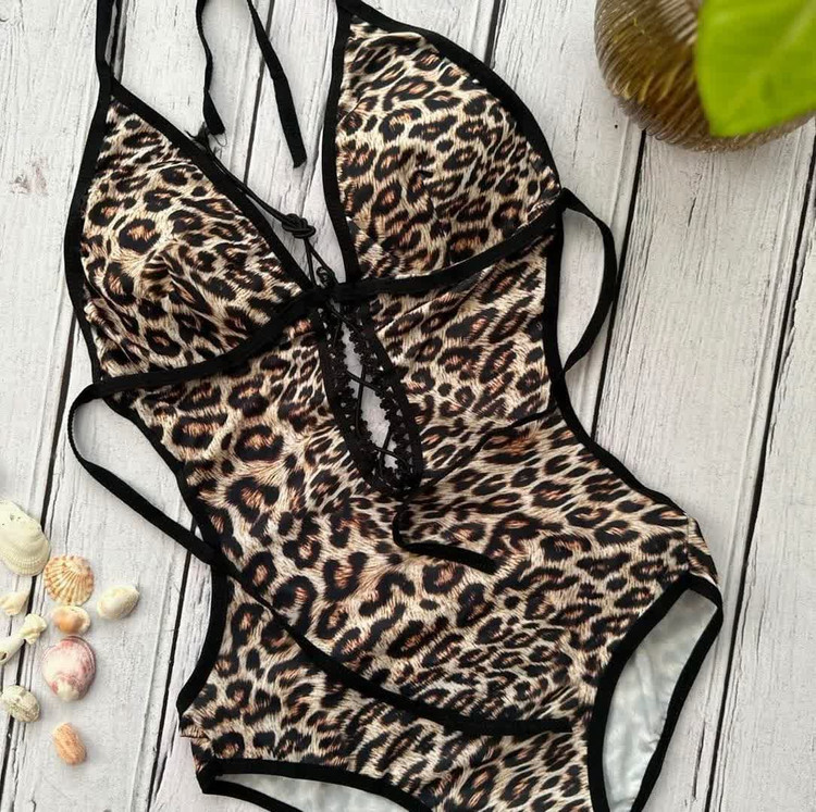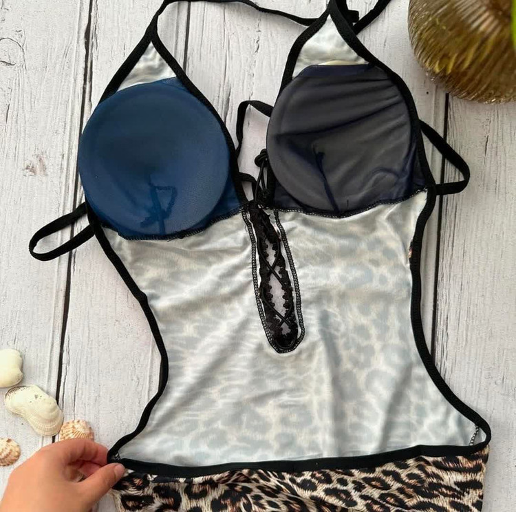 مایو زنانه کاپدار پلنگی جلو ضربدری