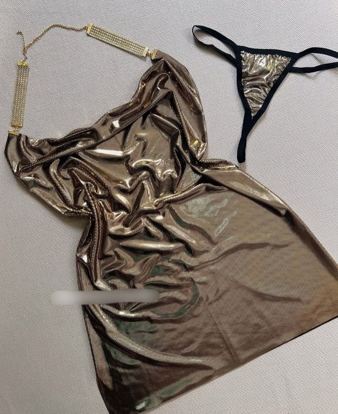 لباس خواب زنانه دیسکویی رنگ طلایی