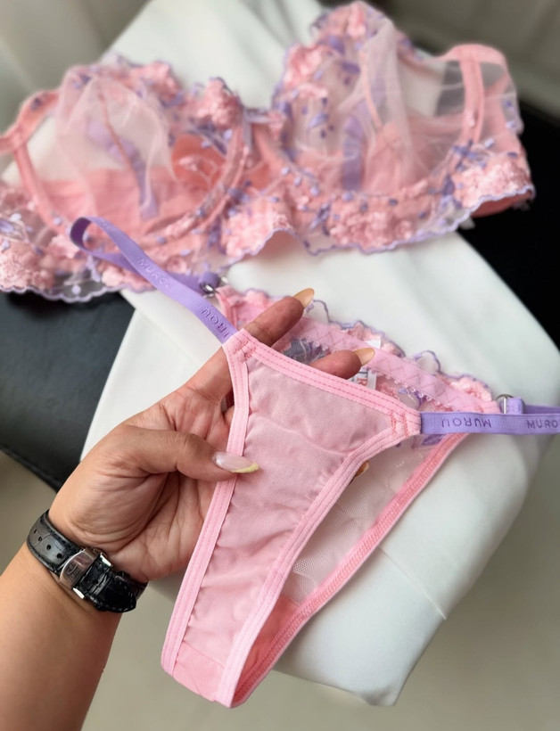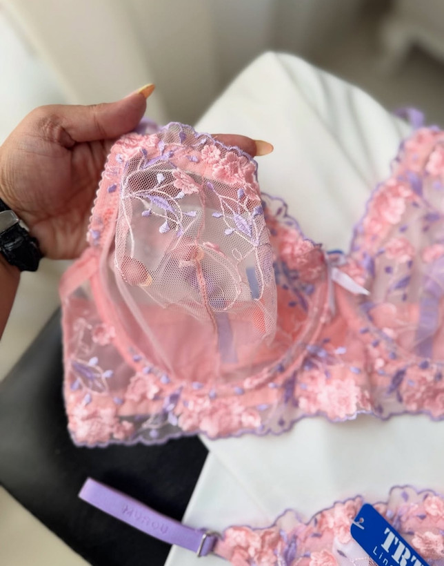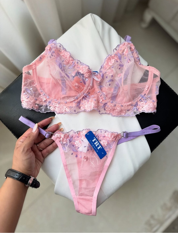 ست لباس زیر زنانه فنردار توری تی آر تی طرح شکوفه