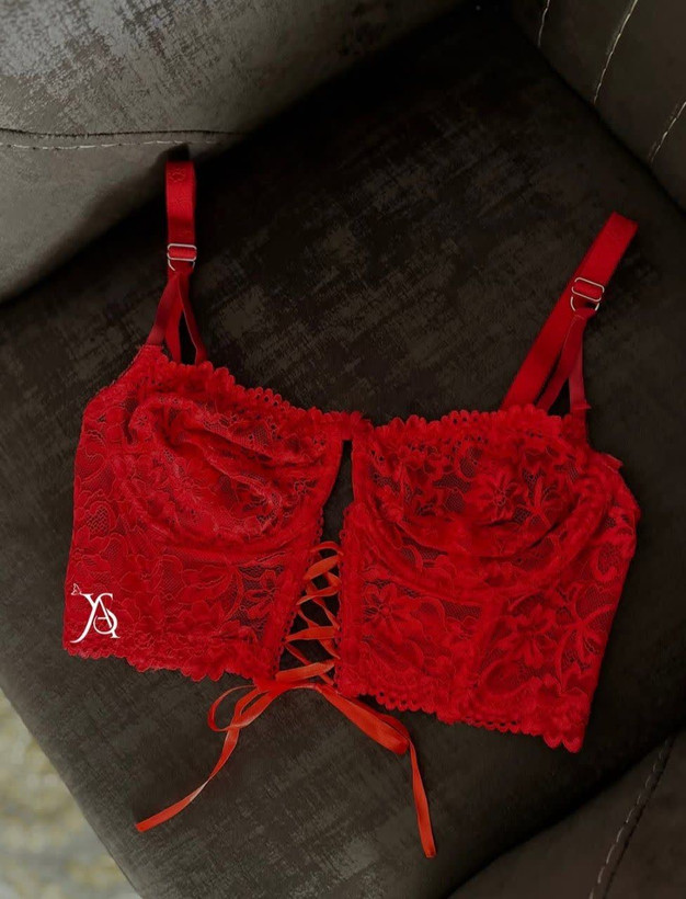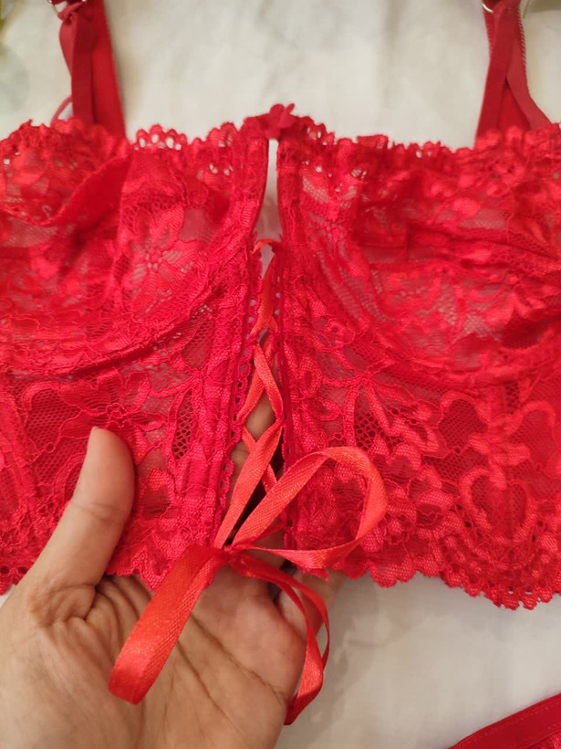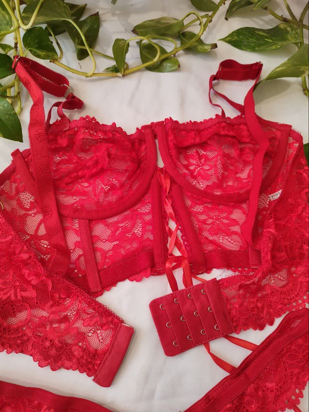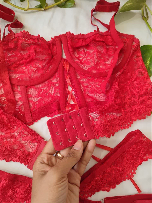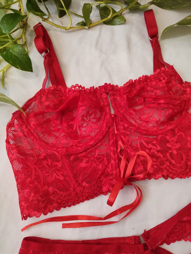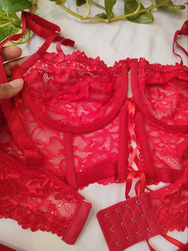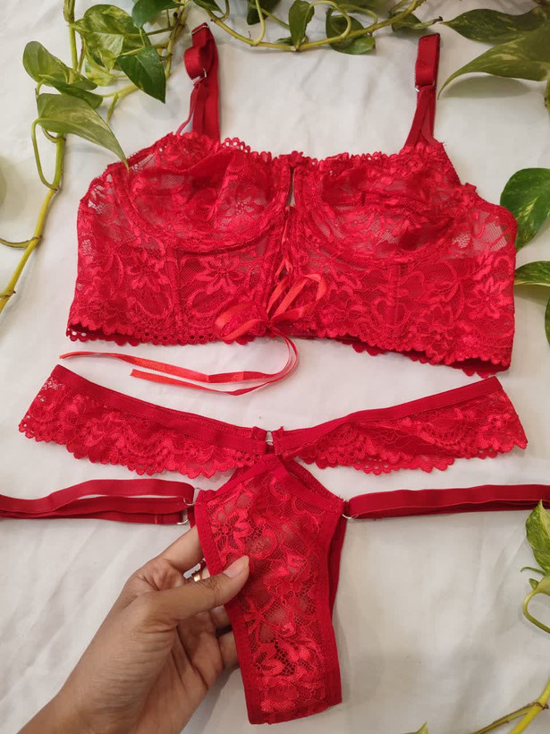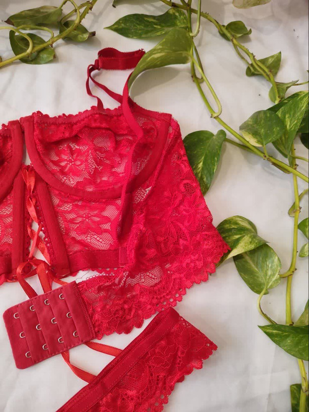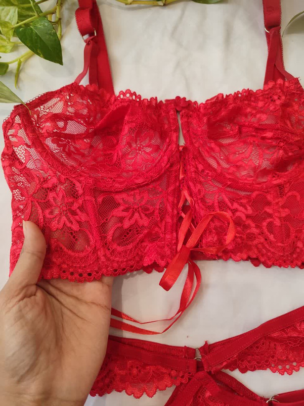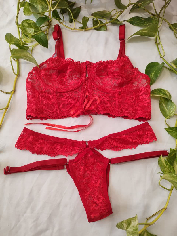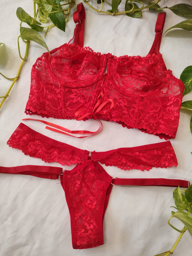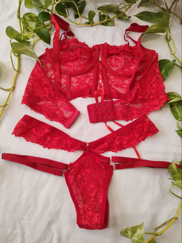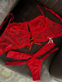 لباس خواب فانتزی دو تکه دانتل فنردار رنگ قرمز