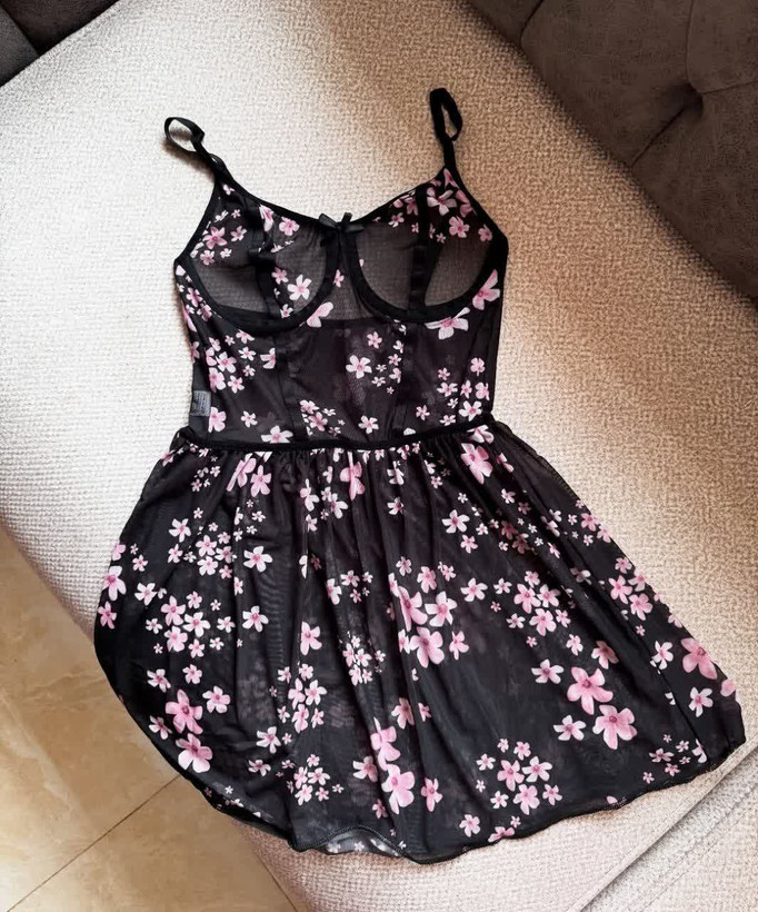 لباس خواب پیراهنی فنردار توری گلدار همراه شورت لامبادا