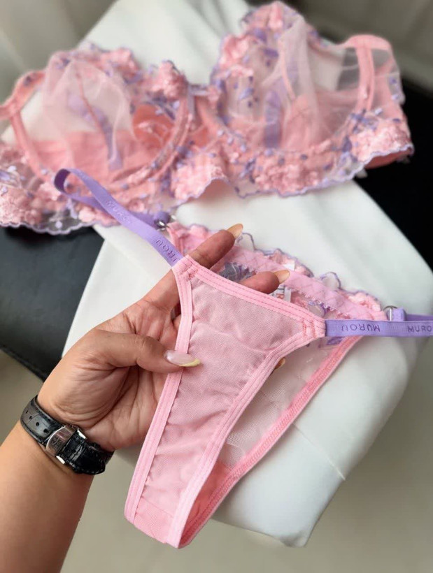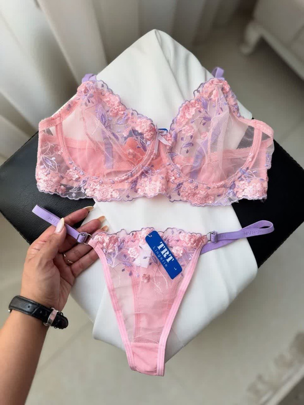 ست لباس زیر زنانه فنردار توری گلدار تی آر تی
