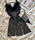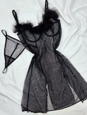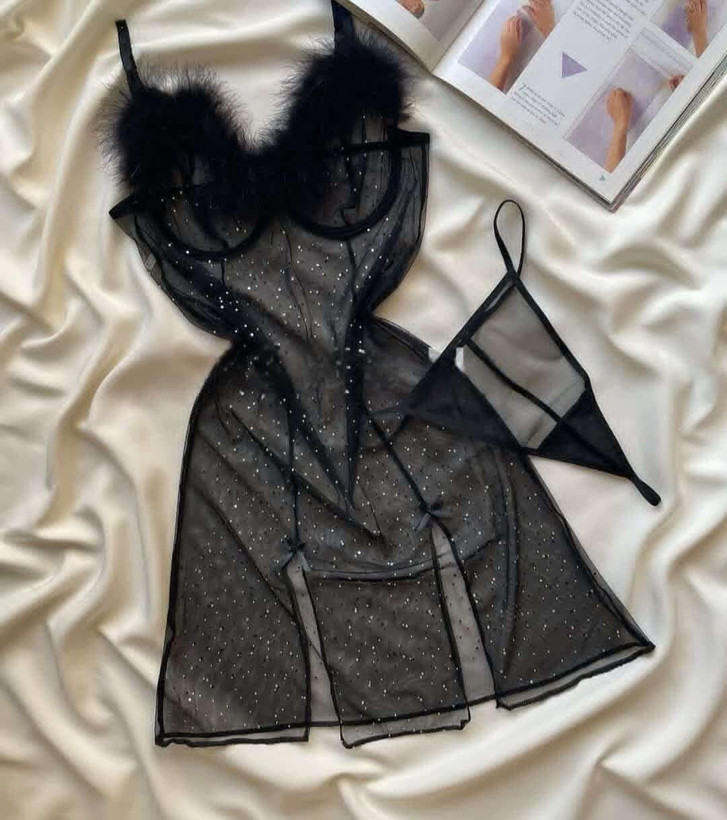 لباس خواب فنردار زنانه پیراهنی تور شیشه ای نگین دار