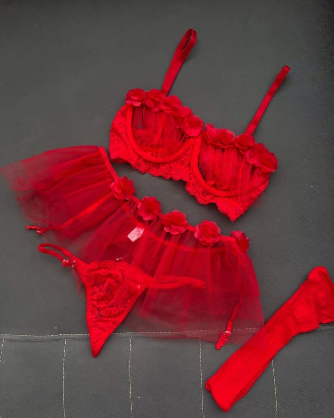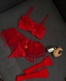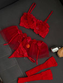 لباس خواب زنانه 4تکه کاپ باز دامنی جوراب دار رنگ قرمز