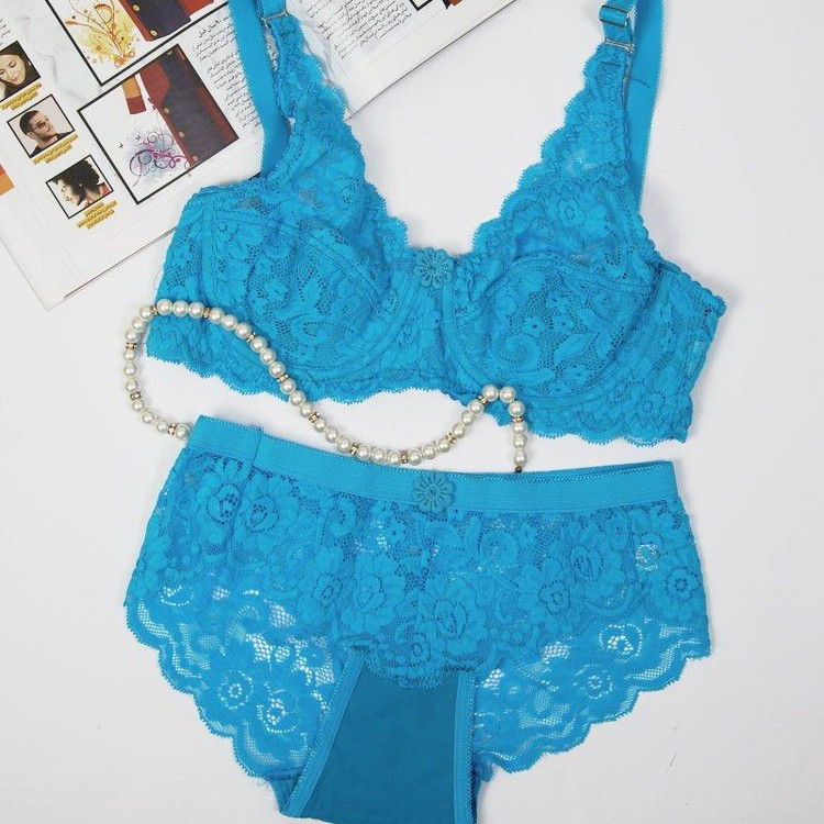 ست لباس زیر فنردار زنانه پانیذ مدل 9015 رنگ آبی