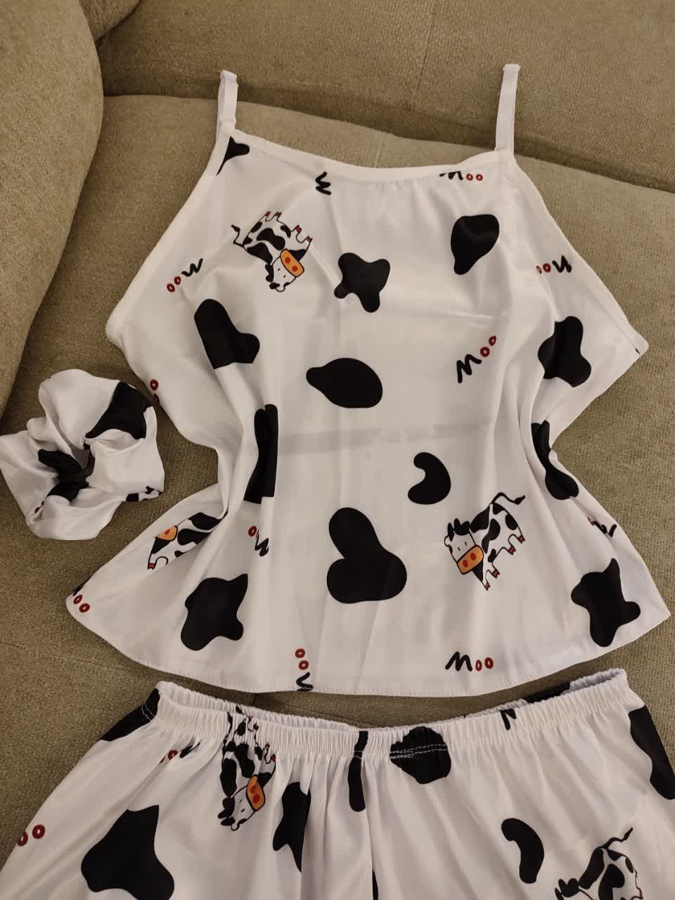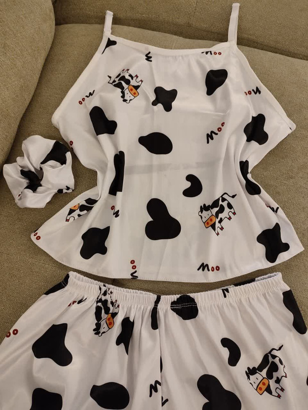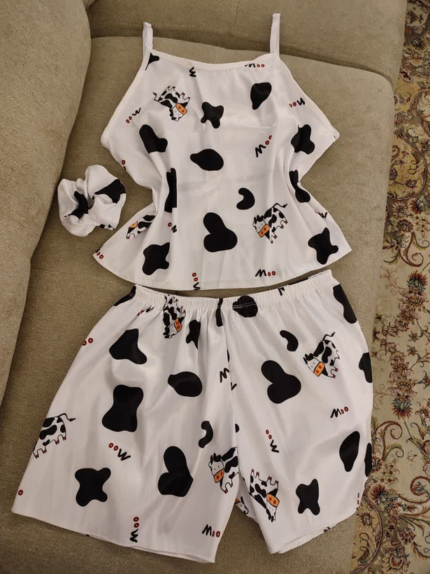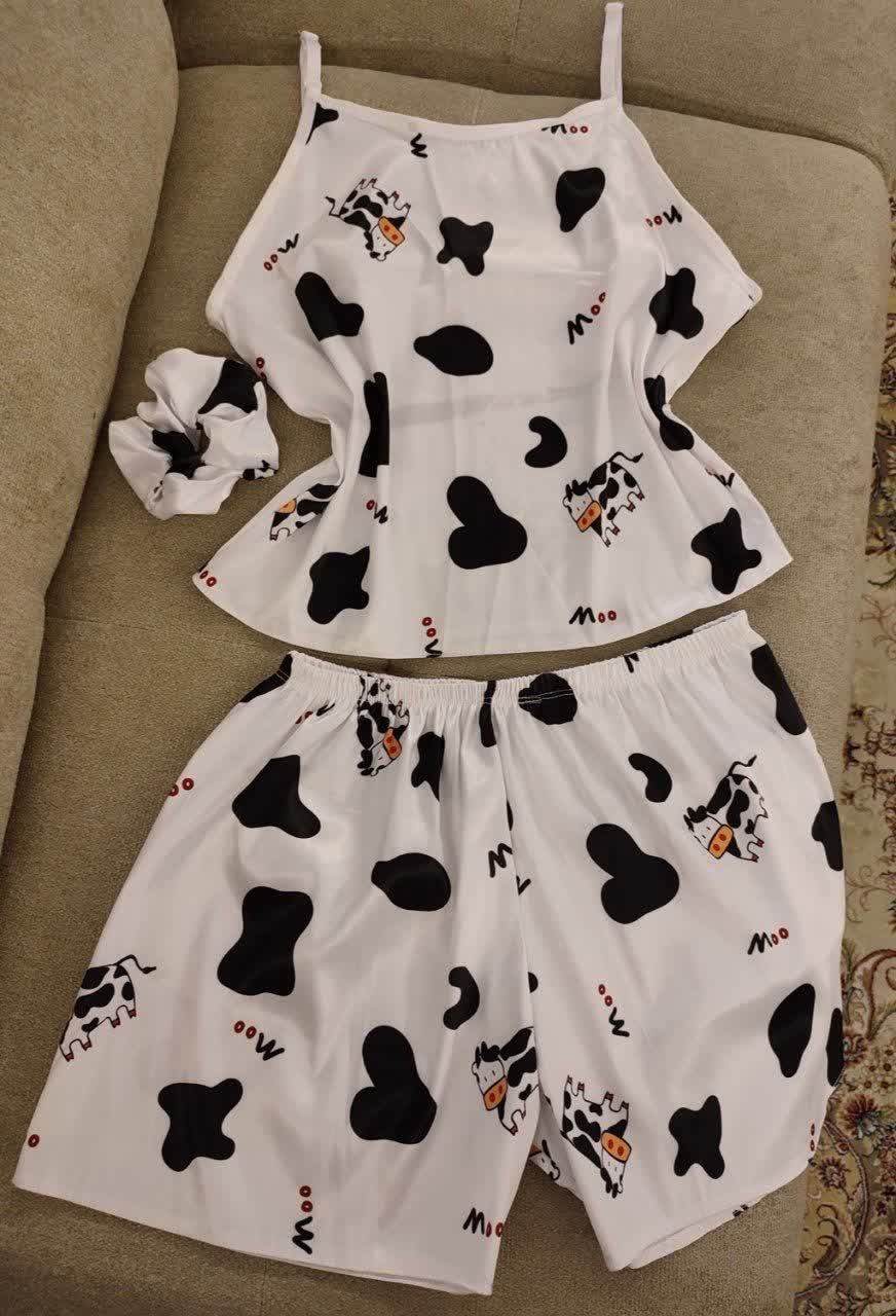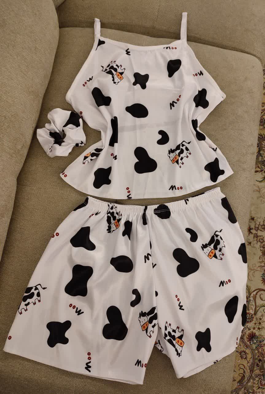 تاپ شورت ساتن همراه اسکرانچی طرح گاوی