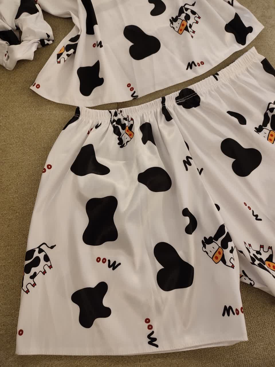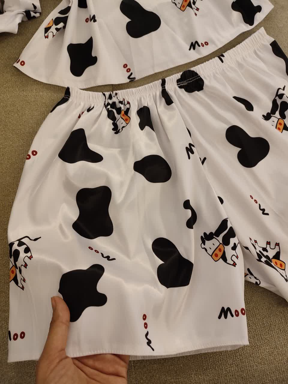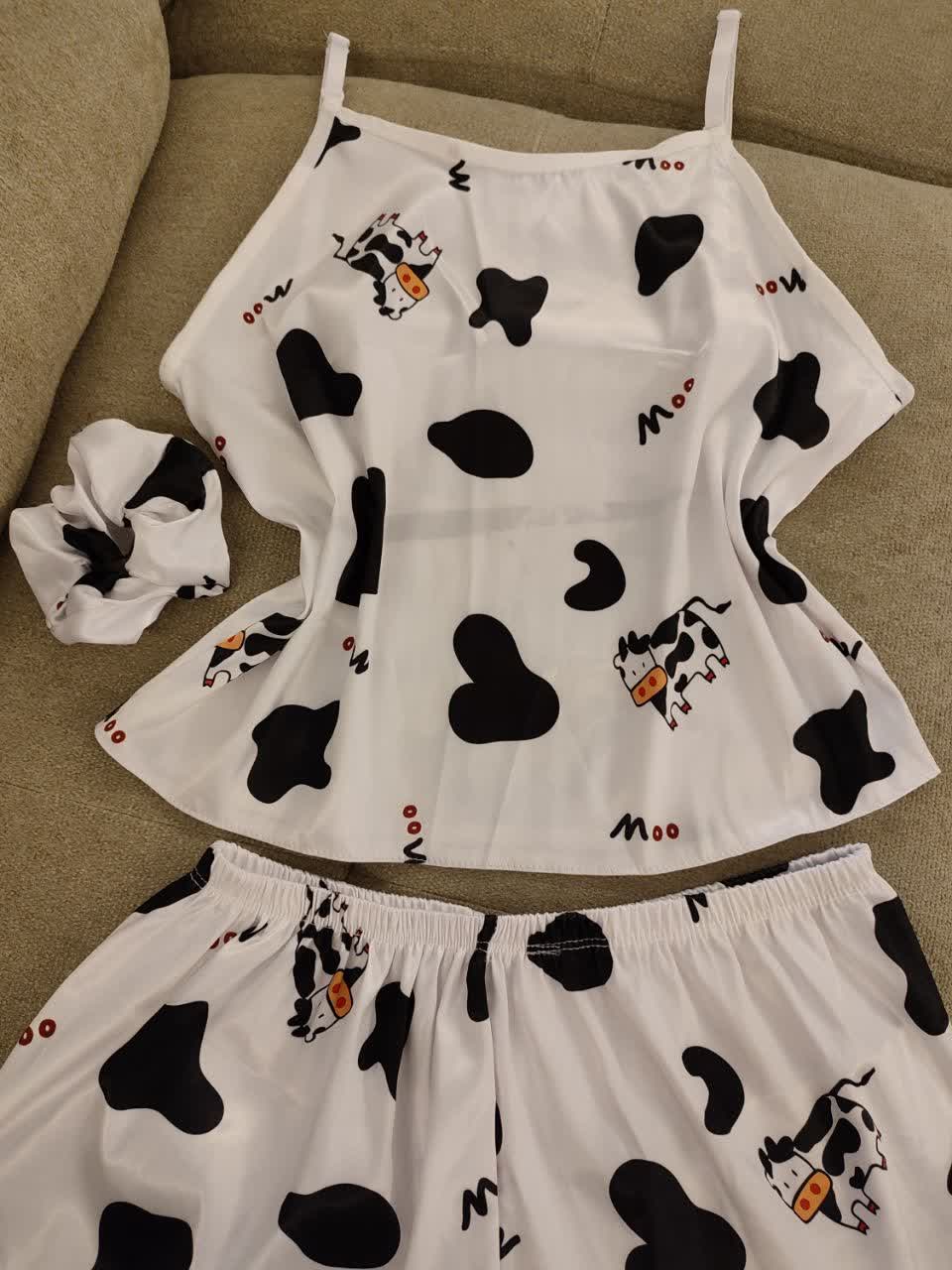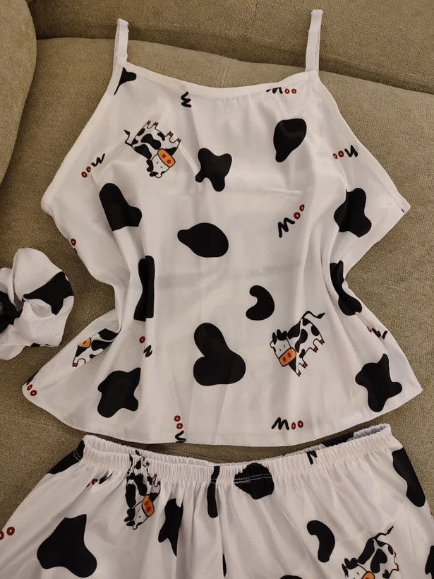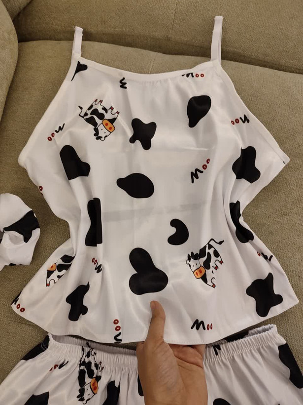 تاپ شورت ساتن همراه اسکرانچی طرح گاوی