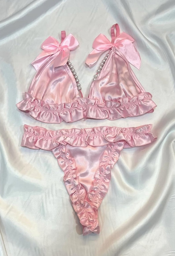 ست فانتزی ساتن هارنس مرواریدی رنگ صورتی