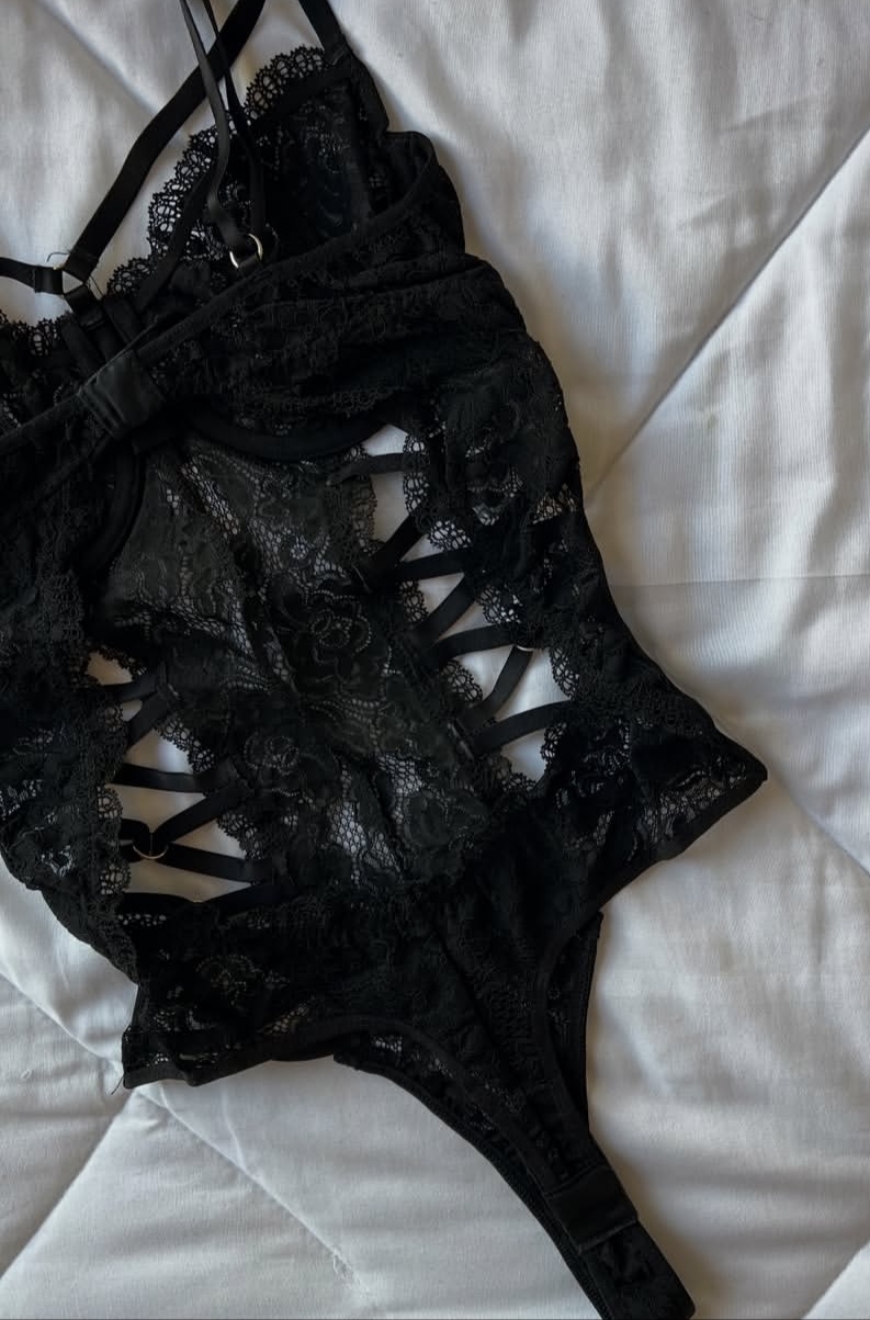 بادی زنانه فنردار فانتزی دانتل هارنس دار فاق باز شو رنگ مشکی
